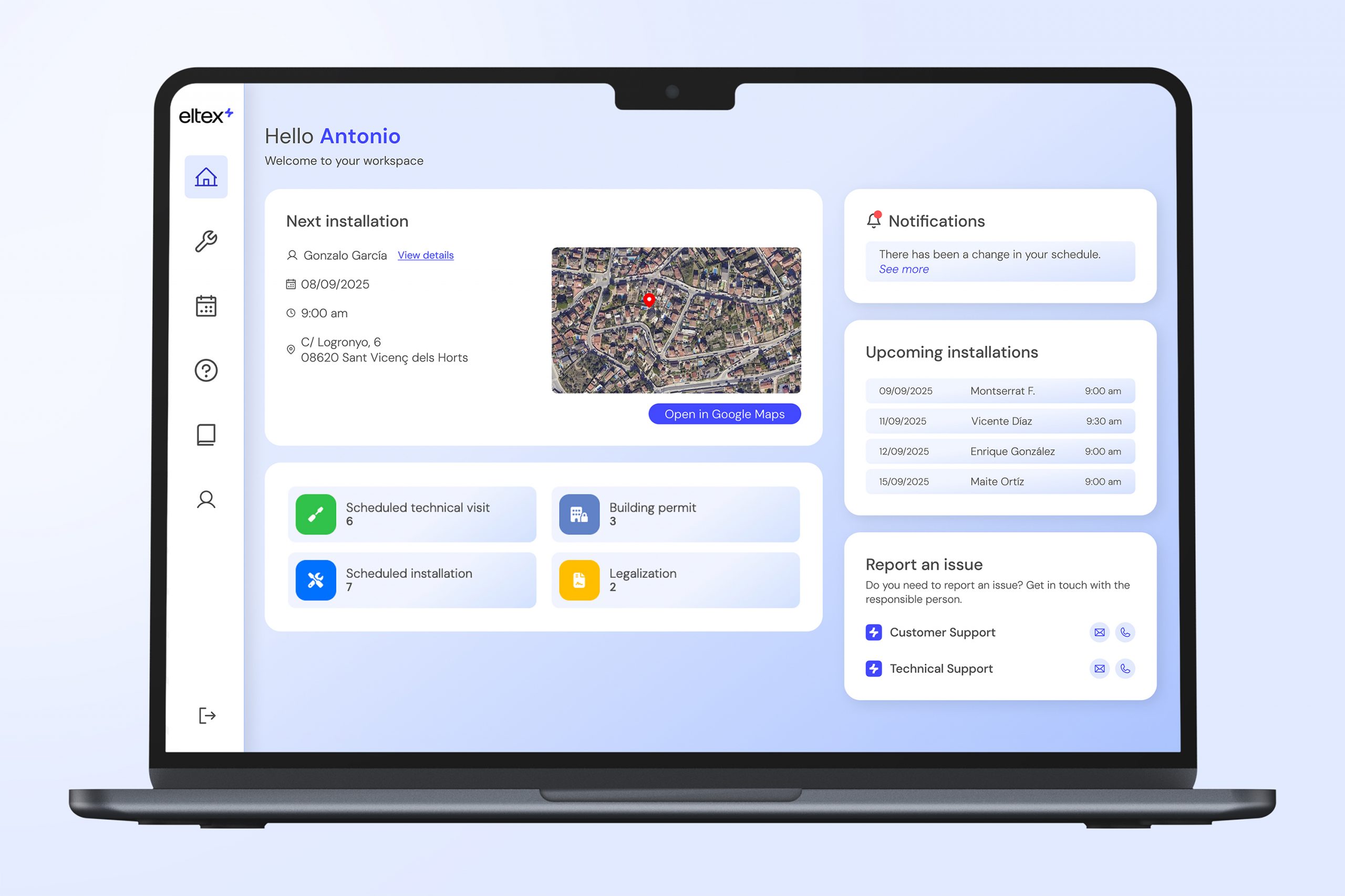 Eltex addresses this execution gap by owning and orchestrating the full residential electrification journey through a single technology and operations platform.Founded in Spain in 2021, Eltex connects lead qualification, feasibility checks, pricing, financing, logistics, and certified independent installers into one coordinated workflow.Homeowners benefit from clearer pricing and more predictable timelines, while installers can focus on execution rather than sales and administration.Eltex centrally procures hardware to maintain quality and pricing control, while shipping materials directly to installers or sites, avoiding inventory complexity. Installations are delivered by a growing network of certified partners following standardized processes, with financing embedded directly into the sales flow. Solar was the entry point, with heat pumps, batteries, and EV chargers now fully integrated as part of a broader whole-home electrification offering.